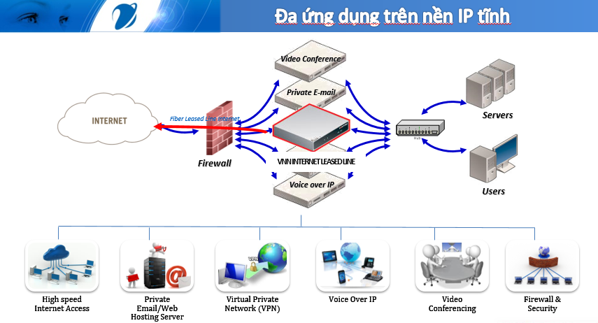 • Kênh truyền riêng biệt, bảo mật cao: Đường truyền được thiết lập riêng cho từng khách hàng, hạn chế tối đa nguy cơ nghẽn mạng hay can thiệp từ bên ngoài.